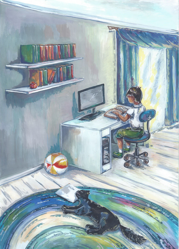 At first he washed all the plates in the kitchen. Then he sang all songs, which he remembered. Then he made up three new songs. He sang them one time and wanted to sing them again, but he forgot the words. Then he decided to do something which he wouldn’t forget. He thought and thought and understood that he could draw something for mother. He drew grass because mother liked grass very much. And then he decided to draw something for father and for Alex.