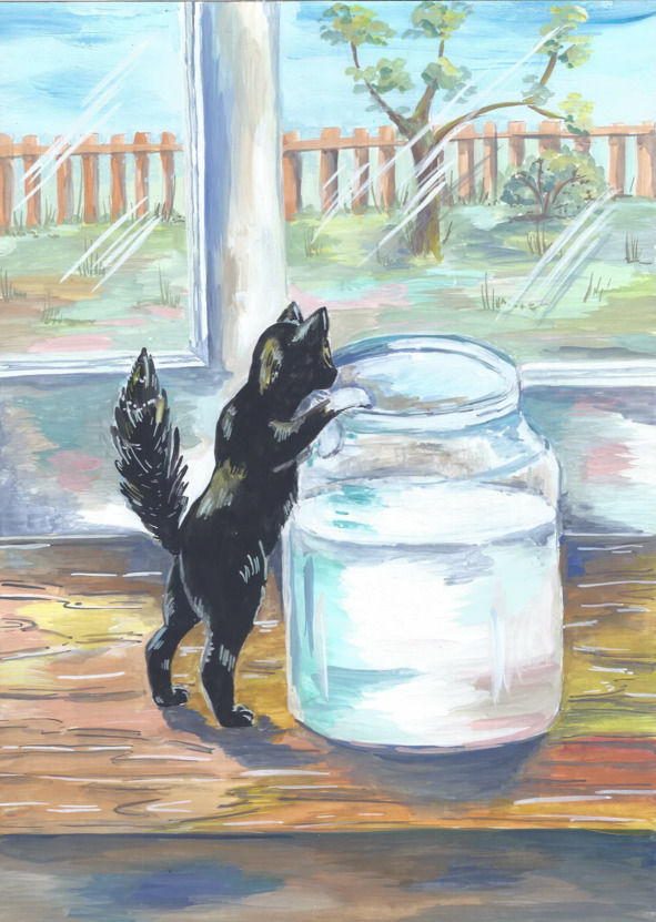As for Ervin, he had to pull the cat’s tail. And though he did it many times a day, the cat went on stealing and making a mess in the house. And what is more, every day he invented a new filthy trick.