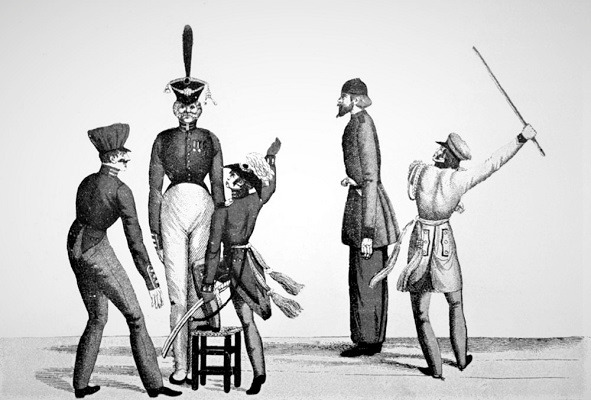 Но полковник на этом не успокаивался! Видно серьёзно его «накачали» высокопоставленные начальники! А скорее всего, характер у него был такой, дурная кровь тевтонских предков не давала покоя. И ежедневно на квартиру к Шварцу направлялся очередной десяток рядовых, которых он лично муштровал в своей гостиной, заставляя часами стоять без движения с поднятой ногой. И эти издевательства не миновали никого в полку, а ведь большинство солдат были славными героями Отечественной войны 1812 года!