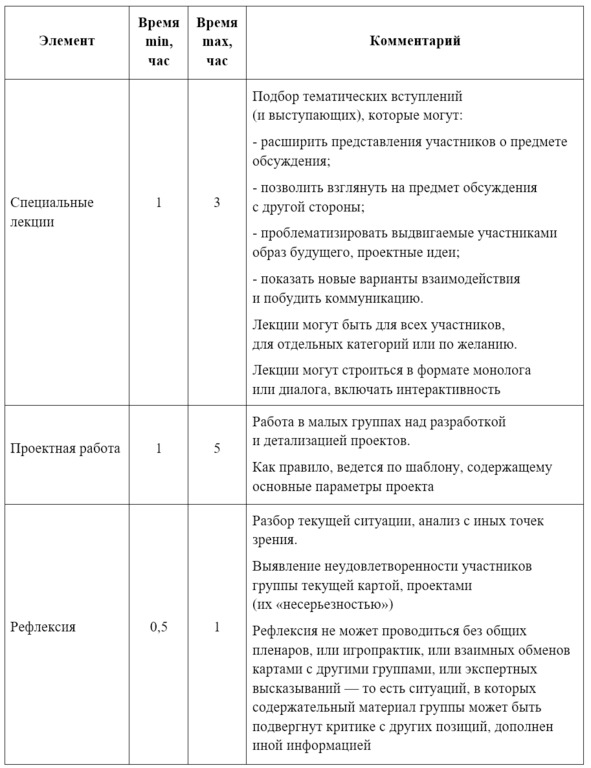 Определить эти характеристики предстоящего обсуждения далеко не просто. Например, в ходе форсайт-навигации «ядерные группы» организаторов значительную часть времени подготовки своих флотов и кэмпов занимались именно определением повестки как всего мероприятия, так и отдельных тематических групп.