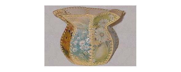 Обратите внимание: стороны коробки можно сделать квадратными, тогда получается миниатюрная шкатулка из открыток. Выкройка должна соответствовать ширине прямоугольника. Если краевые лепестки немного прогнуть внутрь, то внешний вид будет иным. При сшивании деталей можно взять для красоты бисер, и он красиво будет смотреться по краям изделия.