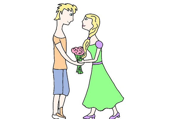 А вот новая картинка. Девушка, уже в белом кружевном платье с воздушной фатой на голове, радостно выглядывает из окна большого многоэтажного дома. А юноша стоит на тротуаре, в кругу своих друзей, и кричит ей: «Оленька, я тебя люблю!!!» Возле подъезда много людей и несколько свадебных машин, украшенных цветами и лентами.