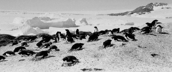 Для гнездовий Адели занимают относительно небольшой скалистый участок на берегу. Центральную, самую обустроенную часть колонии, занимают взрослые пингвины, ближе к краю – пингвины, впервые образовавшие пары, а уж совсем на периферии молодые птицы-одиночки.