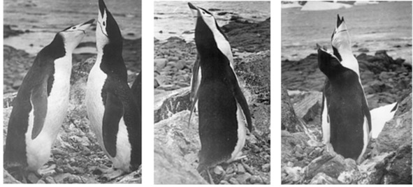 Среди звуков, издаваемых пингвином, следует выделить, прежде всего, песни обольщения и удовлетворения – нечто вроде ласкового воркования, которое заканчивается протяжной нотой и поднятием головы. Трубный крик звучит на одной ноте и слышен за несколько километров. Надо помнить, что в Антарктике в ясную погоду стерильная тишина.