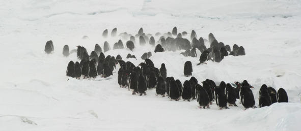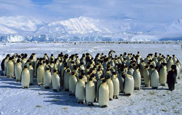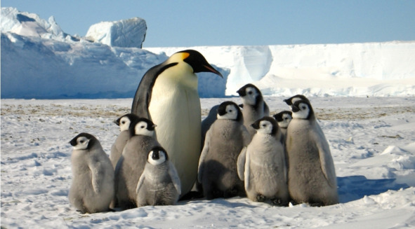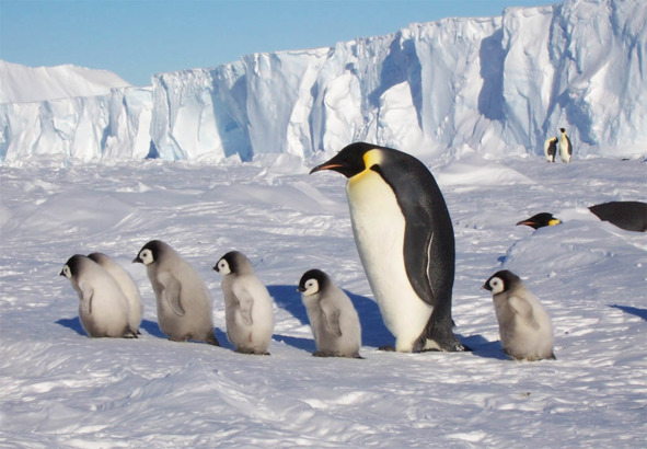 Около двух месяцев в году императорские пингвины проводят в море, а в остальное время (восемь долгих зимних антарктических месяцев) уходят ближе к материку по семейным обстоятельствам.