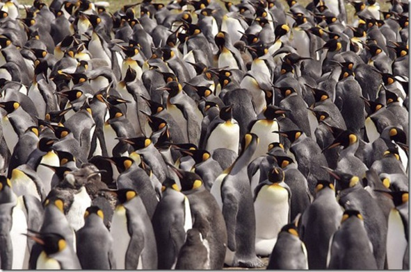 Для того чтобы согреться, когда свирепствует пурга, пингвины собираются в плотные группы, внутри которых температура может достигать +35°С при температуре окружающего воздуха – 20°С. При этом пингвины постоянно меняют местоположение каждого, перемещаясь от края группы к центру и обратно, так чтобы все находились в равных условиях.