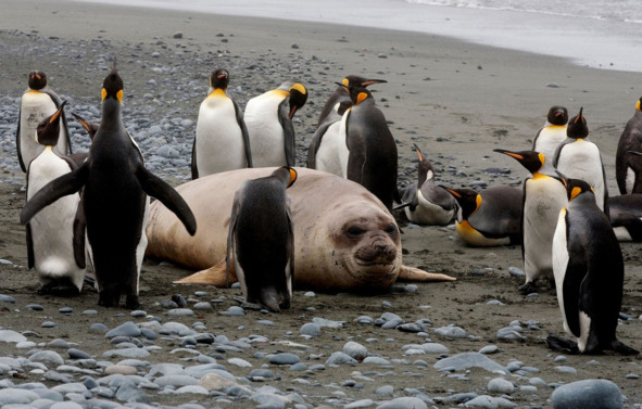 Застигнутые жестоким зимним или летним бураном, пингвины ищут убежище у стен жилых домов станции или прячутся за айсберг с подветренной стороны, сидящий на мели у берега, пережидая непогоду.