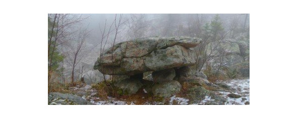 Андрей Любушкин [35]. На территории Челябинской области поисковиками обнаружены каменные сложения, напоминающее языческие святилища древних северян – сейды! Однако участники группы «Таинственный Урал» обнаружили аналогичные образования и на Южном Урале неподалеку от Златоуста в районе Александровской сопки. Их видели и раньше, но многие ученые полагали, будто мегалиты имеют природное происхождение и образовались в результате схода ледника. У челябинских искателей совсем другое мнение. Если предположить, что тысячи лет назад горы были выше, шире и в целом больше, то падение столь массивной плиты не осталось бы для нее без каких-либо последствий, скорее всего, массив бы раскололся. К тому же, удивляет удивительная симметричность расположения непропорциональной плиты, если бы волей случая она была двинута чуть-чуть правее или левее, то вряд ли бы она устояла, а в том виде, что объект сохранился до наших дней – почти идеальное расположение, что также является косвенным признаком искусственного происхождения объекта. Сейчас перед южноуральскими исследователями стоит очень важная задача – провести подробный анализ южноуральских сейдов и сравнить их с мегалитами в Карелии и в других северных районах Евразии. Всех их объединяет ряд факторов, многие из которых стоят на грани науки, мистики и фантастики. Например, некоторые сейды оказывают психоэмоциональное воздействие на людей, иные, по словам этнографов, исцеляли болезни, а третьи, и вовсе – пели. Ветер проходил под большим валуном, и создавалось впечатление, будто кто-то поет высоким и красивым многоголосьем. Вот примеры южноуральских сейдов – рис. 38 и рис. 39.