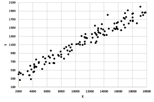 Пример диаграммы разброса для корреляционной зависимости показан на рисунке ниже.