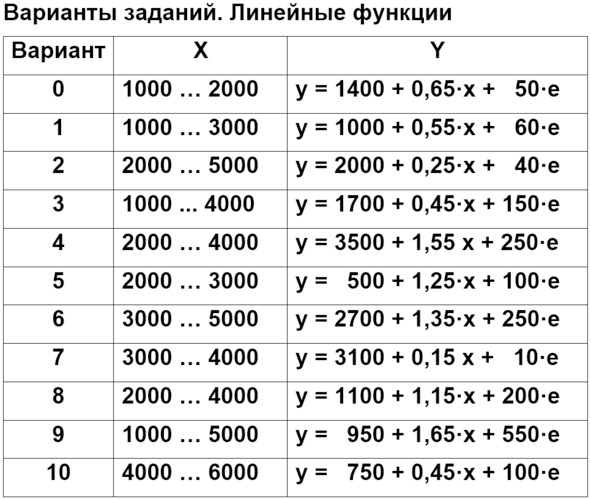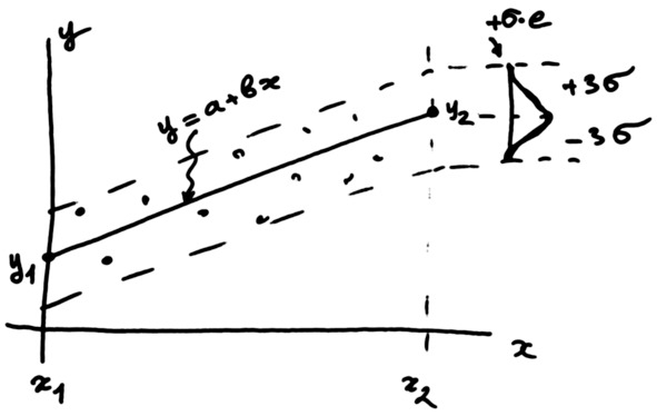 Для построения линейной функции оцените значения на границах диапазона значений факторного признака. Оцените случайный разброс по правилу трёх сигм.