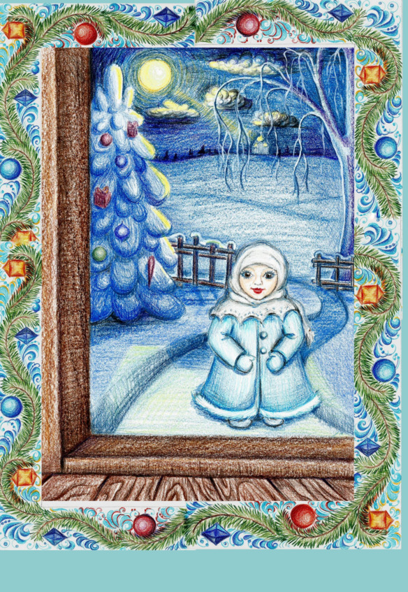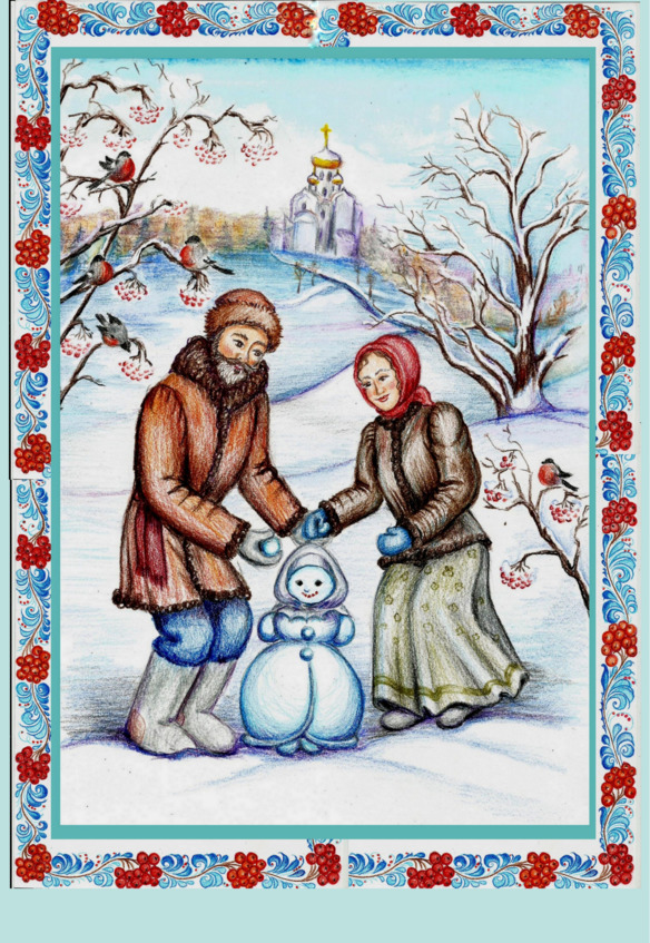 Пошли они в огород, воды студёной с собой набрали, чтобы снег лучше лепился. И сделали маленькую девочку, да такую хорошенькую, что любо-дорого посмотреть. Глазки из угольков, губки из рябинки выложили. На головушку шаль повязали. Стоят, любуются своей работой. Жена всплакнула, муж на небо перекрестился. Посмотрели да и пошли домой Рождество встречать.