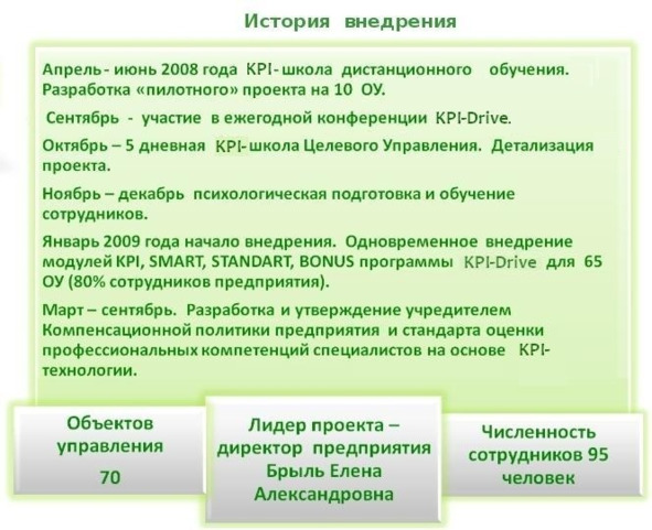 Илл. 4. История внедрения KPI-технологии и программы KPI-Drive