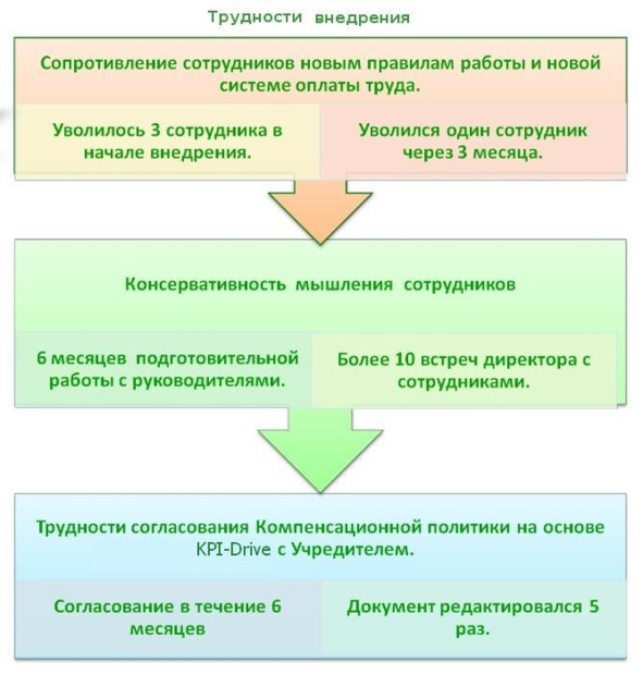 Консервативность мышления сотрудников. Очень продолжительное время длилась подготовка сначала с руководителями подразделений, потом совместными усилиями с их подчиненными. С руководителями мы уже встречались, теперь встречались с каждой группой сотрудников, объясняли им. Рассказывали, обозначали систему работы. Этому процессу было посвящено примерно пару месяцев предварительной работы.