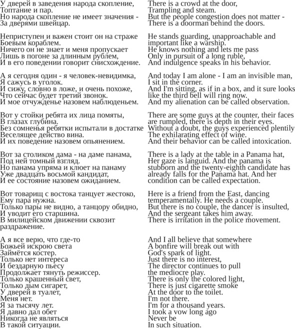 It was just about this place that the leader of the «Time Machine» group Andrei Makarevich wrote winged catch lines at the time: