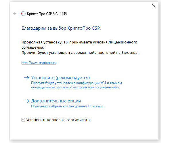 Окно приглашения одинаково для всех версий КриптоПро, вне зависимости от того, какую версию вы устанавливаете.