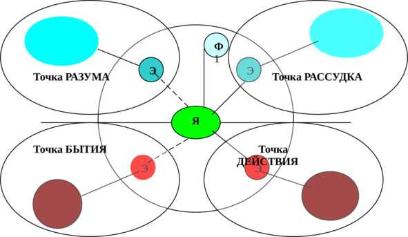 Есть элементы, связанные с точкой РАССУДКА. Это та самая КАРТИНА МИРА, о которой мы говорили, вернее – её исходные элементы. Все они доступны для осознания, более того, в обычном состоянии эти элементы и составляют структуру нашего «я». Разумеется, наша КАРТИНА МИРА гораздо шире, чем та её моментальная фотография, которая существует в каждый конкретный момент времени, но мы можем путешествовать по ней почти свободно.