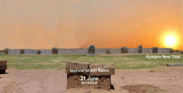 Солнце достигло столба в крайнем правом углу 21 июня, отмечая зимнее солнцестояние и Новый год Аймара. Тогда проводили великий праздник Инти Райми, солнце, кажется, стоит на месте.