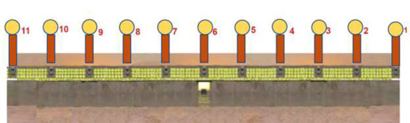 Рис. 31. Настоящий календарь Тиуанако – это Календарная стена, а Врата Солнца – управление этим календарем. Рисунок автора, Александра Матанцева. Обозначения 1 – 11 – это положение Солнца в разные периоды времени над 11 колоннами Календарной стены
