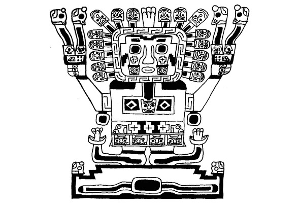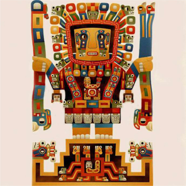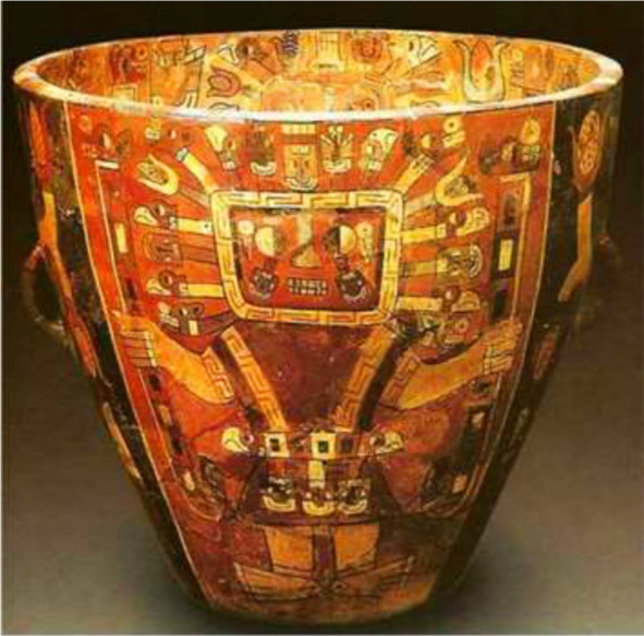 Рис. 39. Сосуд культуры Уари (1 век н.э). В фигуре Бога Виракочи – 14 звеньев в цепочке меандра и 4 лепестка сверху изображения Меркурия [257]