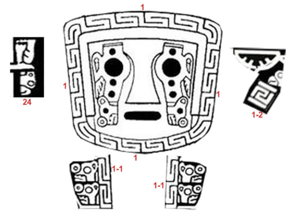 Рис. 41. Лицо Бога Виракочи. Здесь два звена меандра по 7 ячеек [259]