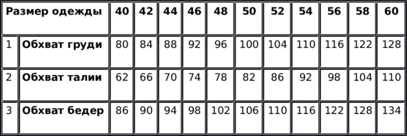 Но размер одежды определяется не только по груди, но и по талии и по бедрам. Возьмем пресловутые 90-60-90 и сравним их с цифрами из таблицы размеров. Получаем по груди 46 размер, по талии 38, а по бедрам 42. Вот такая «петрушка» получается.