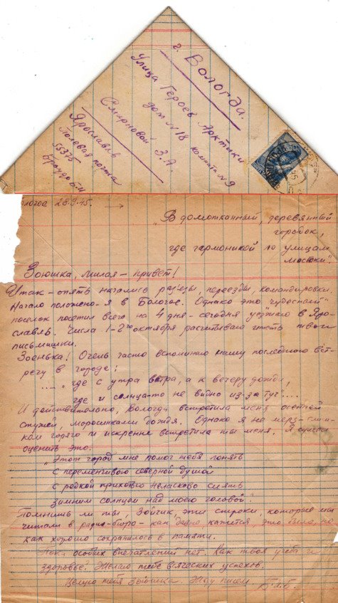 Только окончилась Великая Отечественная война. 1945 год. Вот такие письма писали друг другу мой папа и моя мама… И отпускной на короткую встречу. Я храню сотни этих писем любви.