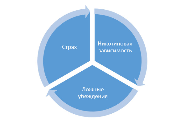 Это показывает, что курильщик верит, что что-то получает от сигарет, пока вы в это верите, вы не сможете доказать себе обратное, поэтому вам нужно избавиться от всех ложных убеждений относительно сигарет и понять, как работает ловушка, а которой вы оказались.