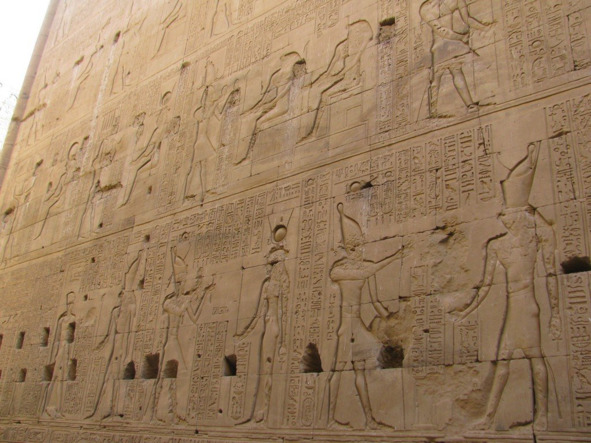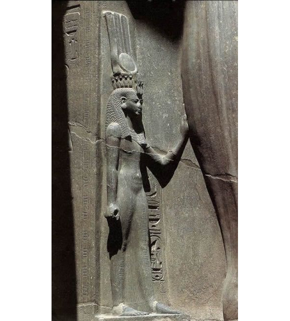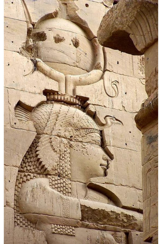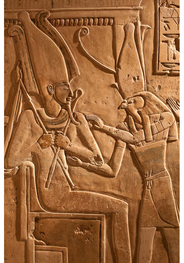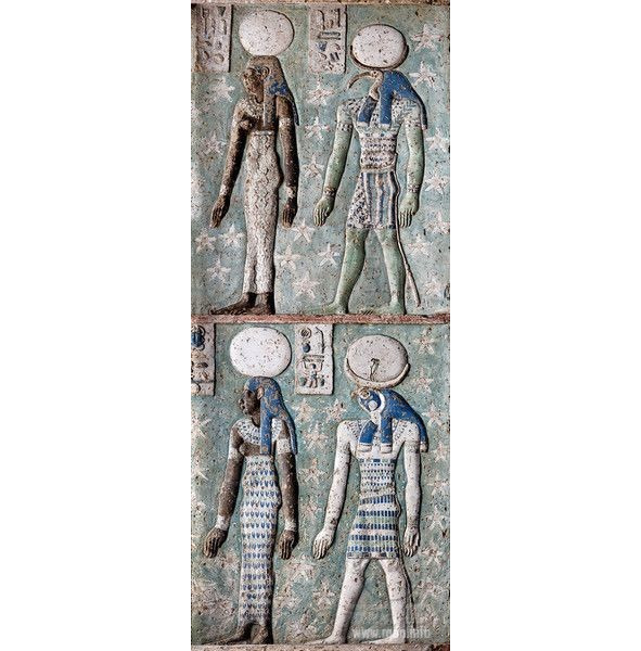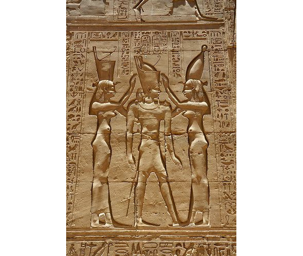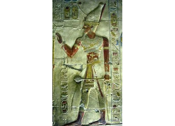 Изображения богов и фараонов с высокими коронами с шариком на макушке можно встретит и в виде барельефов – рис. 12