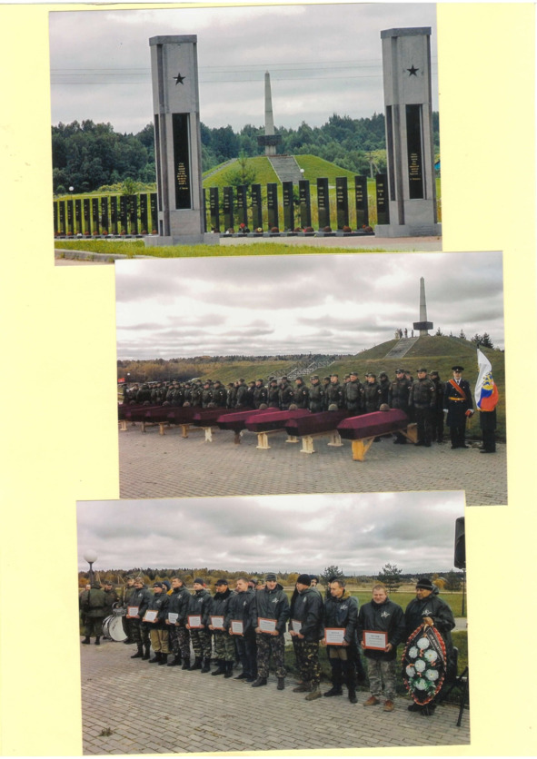 Вяземский поисковый отряд Смоленской области «Долг» (командир Александр Пронин) и поисковый отряд «Память» г. Рославль (командир Жарынцев Игорь) занимаются поиском неизвестных могил и незахороненых воинов времён Великой Отечественной войны, посвящая этому святому дело своё время, силы, душу и сердце.