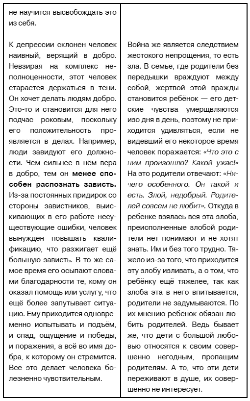 ДЕПРЕССИЯ, ОНА ЖЕ СВЕРХЧУВСТВИТЕЛЬНОСТЬ, ПОРОЖДАЕТ СЕМЕЙНЫЕ ССОРЫ, БОЛЕЗНИ, ВОЙНЫ.выявляя перед всеми его истинную неприглядную суть. Интеллигент подавляет саму эту возможность в зародыше, объявляя хамом любого, кто честно и прямо высказывает правду. Хам прикусывает язык и молча страдает, но когда терпению приходит конец, он взрывается. Если теперь запятнанный им хороший человек не отомстит хаму, то станет плохим в собственных глазах. Знание этого повергло бы его в депрессию.