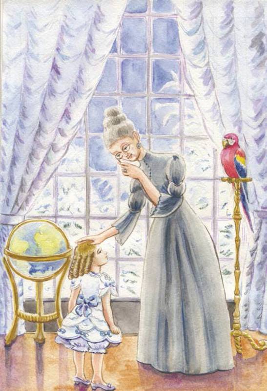 Красивая высокая дама наклонилась к девочке и погладила её по щеке. Женщина выглядела так изящно и элегантно, что слово бабушка, казалось, относилось не к ней, но в комнате больше никого не было. Высокая причёска с перламутровой заколкой, длинное бархатное платье и лорнет — всё смотрелось гармонично и просто.