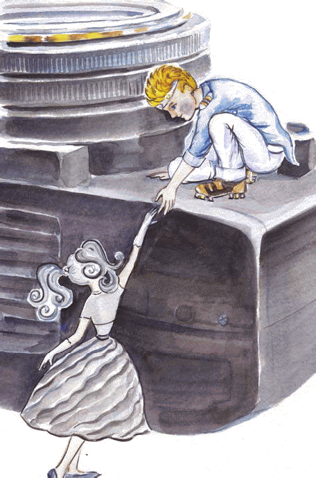 Выдернув пылинку из-под укрытия, Баг потащил её к краю стола. Полинка не упиралась. Она только крепко сжала руку Бага. Проходя мимо большой раскрытой книги с картинками, на которой лежала голова вихрастого парнишки, Баг спросил вслух:
