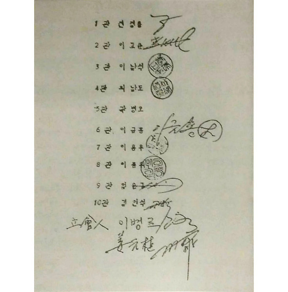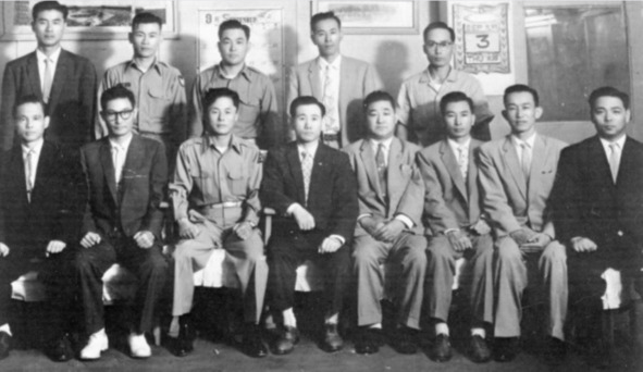 Нижний ряд, слева направо: Хван Ки (Мудокван); Юн Тхэ Ен (вероятно, Джидокван); Чхве Хон Хи (в форме), Ро Бен Джик (Сонму кван), неизвестный представитель Корейской спортивной ассоциации, Ли Нам Сук (Чанмукван), Ум Ун Кю (Чондокван) и Хен Чжон Мен (Чон и О До кваны). Верхний ряд слева: Ким Сун Бэ (Чанму кван), Ко Чжэ Хва (Чон и О До кваны), Нам Тхэ Хи (Чондокван); неизвестный; неизвестный.