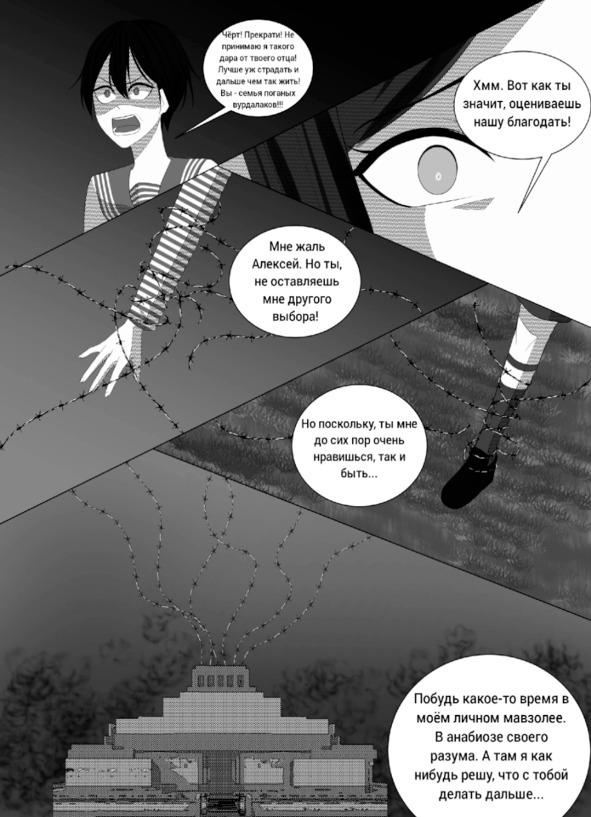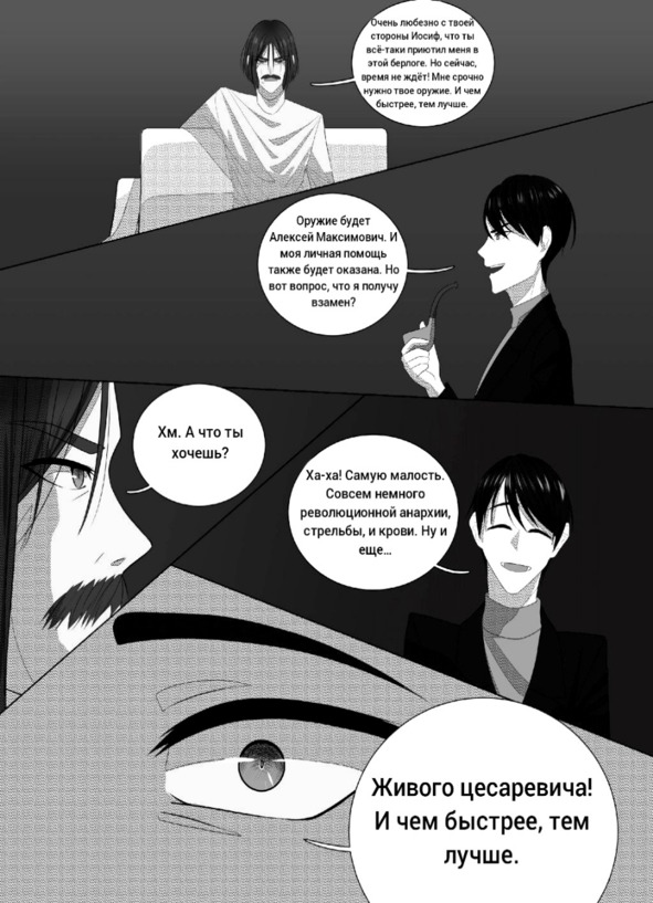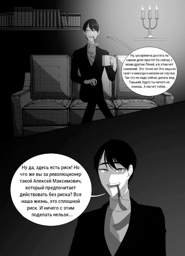Джугашвили конечно, очень хорошо мог нагонять на бессмертных панику и страх. Наверное это был единственный смертный, которого по настоящему боялись все упыри Петербурга. Одни лишь легенды о том, как он потрошил кровавых помещиков серебряными скальпелями, до сих пор ходят по Европе, где белые эмигранты продолжают распространять их как страшные сказки среди местных кровопийц. Термин: «вынужденная жестокость», служила и служит для нас спасением от тех, кто желает истребить и разъединить наш народ. Таков, закон революции, у которого есть начало, но нет конца…