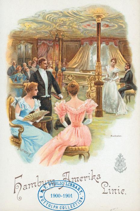 Обложка меню и музыкальной программы, предлагаемая пассажирам на корабле «Августа Виктория», 1900 год, Цифровые коллекции Нью-Йоркской публичной библиотеки