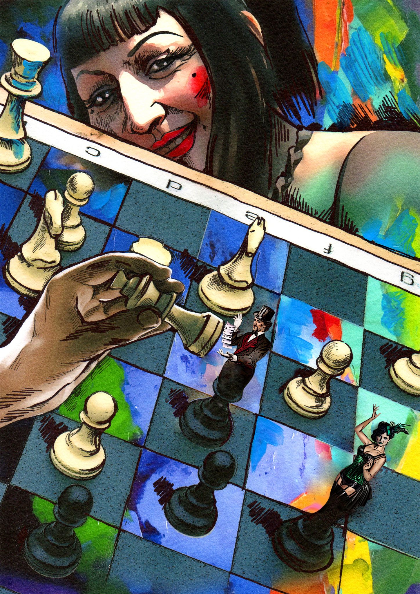 За игрой Гера рассказал сеньоре Короне историю отрезанного уха. Одновременно с ходом слона на g4 он посетовал, что его могут выслать из страны, и тогда их сегодняшняя шахматная партия окажется, увы, последней.