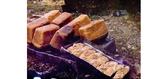 Хлеб мы выпекали, сложив печку из таких же камней. Засыпали галечником или выкапывали в склоне, обкладывая стенки плоскими плитами. Два часа протопки, затем выгребали угли и закладывали формы с тестом. Вход закрывали плоской плитой и подкладывали перед ней сохранившиеся угли. Минут через 40 формы вынимали. До чего же вкусен был этот хлеб, особенно горбушки. Они были просто на расхват.