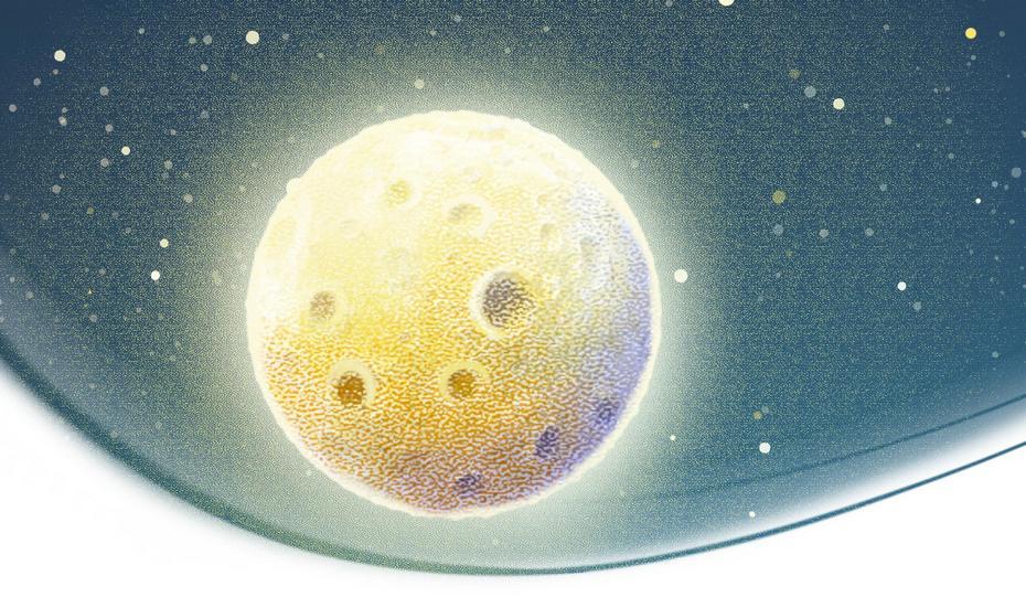 – Я родился! – сказал необычный малыш и хотел было выбраться наружу, но тут… Ой-Ой-Ой! Луна словно перевернулась. И малыш вместе со скорлупой начал падать. Он крутился и вертелся в космическом пространстве. Земное притяжение повлекло его на нашу планету с невероятной скоростью. Малыш изо всех сил держался за свою скорлупку. Он открыл глаза и увидел отдаляющийся белый диск луны.