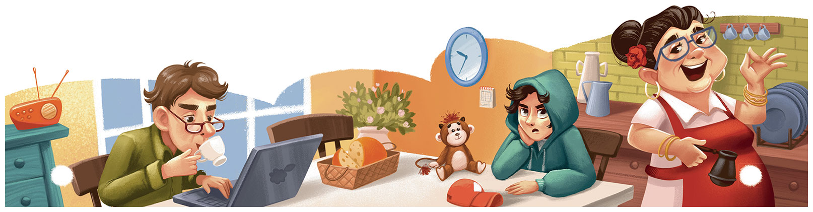 – Basta così![5] Меня хоть кто-то сегодня утром услышит? Андреа, вылези из-за монитора! Лёлик, сними уже этот капюшон!
