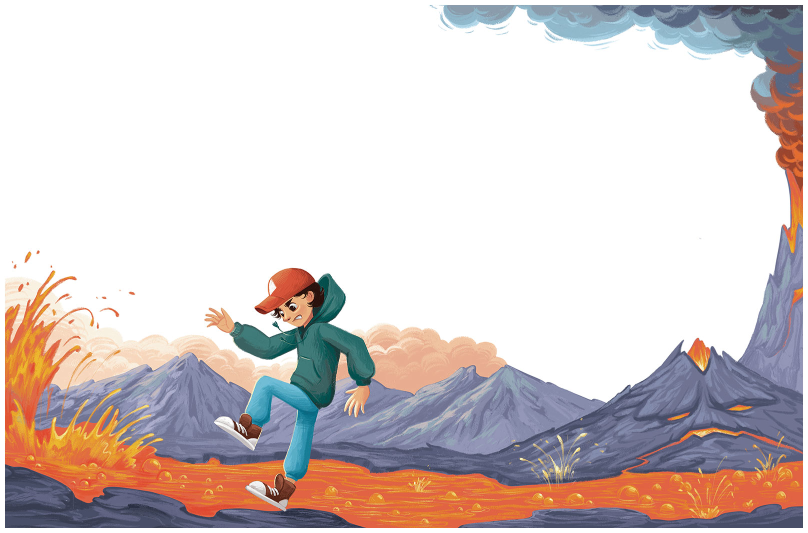 Я подпрыгнул и изо всех сил стукнул пятками лаву. И ещё. И ещё раз! А потом развернулся и быстро пошёл прочь от вулкана.