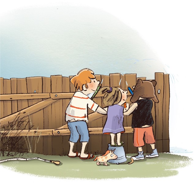 Мы спрятались за забором и втянули головы.