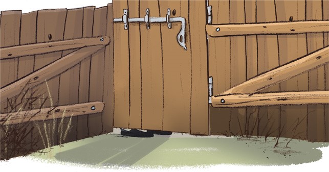 Это мы смогли определить по большим, чёрным, блестящим ботинкам, посмотрев в щель под забором.