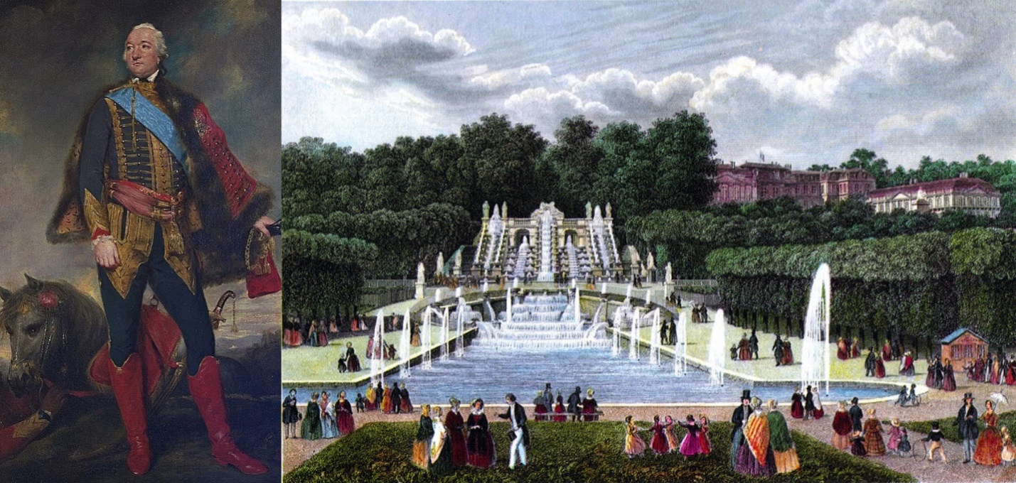 Портрет Луи Филипа II и Большой каскад в Сен-Клу в 1845 году.