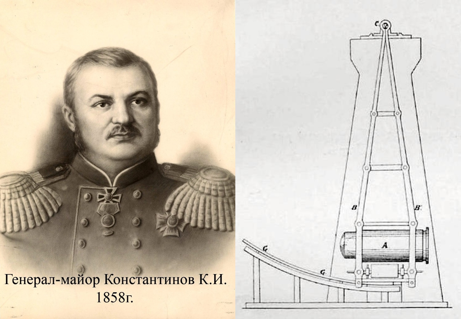 Следующим талантливым изобретателем, которого мы рассмотрим, приложившим руку к развитию аэронавтики – Константинов Константин Иванович (1818-1871), внебрачный сын самого Великого князя, цесаревича, Константина Павловича, несостоявшегося императора Российской империи внезапно умершего в 1831 году от французской актрисы Клары-Анны де Лоран. Денег на образование мальчика не жалели, можно добавить, что музыке его учил сам Шопен. В январе 1834 года, князь Голицын выполняя волю покойного отца определяет Константина де Лоран юнкером в престижное Михайловское артиллерийское училище, где он был в ученикаху самого Егора Христиановича фон Весселя49. Затем в 1838 году заведовал школой селитряного и порохового дела. В 1840-1844 годах командирован за границу, в страны Европы и в это время его наставником становятся Сэр Чарльз Уитстон (1802-1875) изобретатель: концертины, электромагнитного телеграфа, измерительного моста50, биграммного51 шифра, названного его фамилией и еще стереоскоп для просмотра объемных изображений, широко применяемый всеми слоями населения того времени. Общался Константин и с семьей знаменитых часовщиков Берге, изобретя с их помощью электробаллический прибор, предназначенный для измерения скорости снаряда вылетающего из ствола орудия и прибор для измерения малых промежутков времени – хроноскоп.