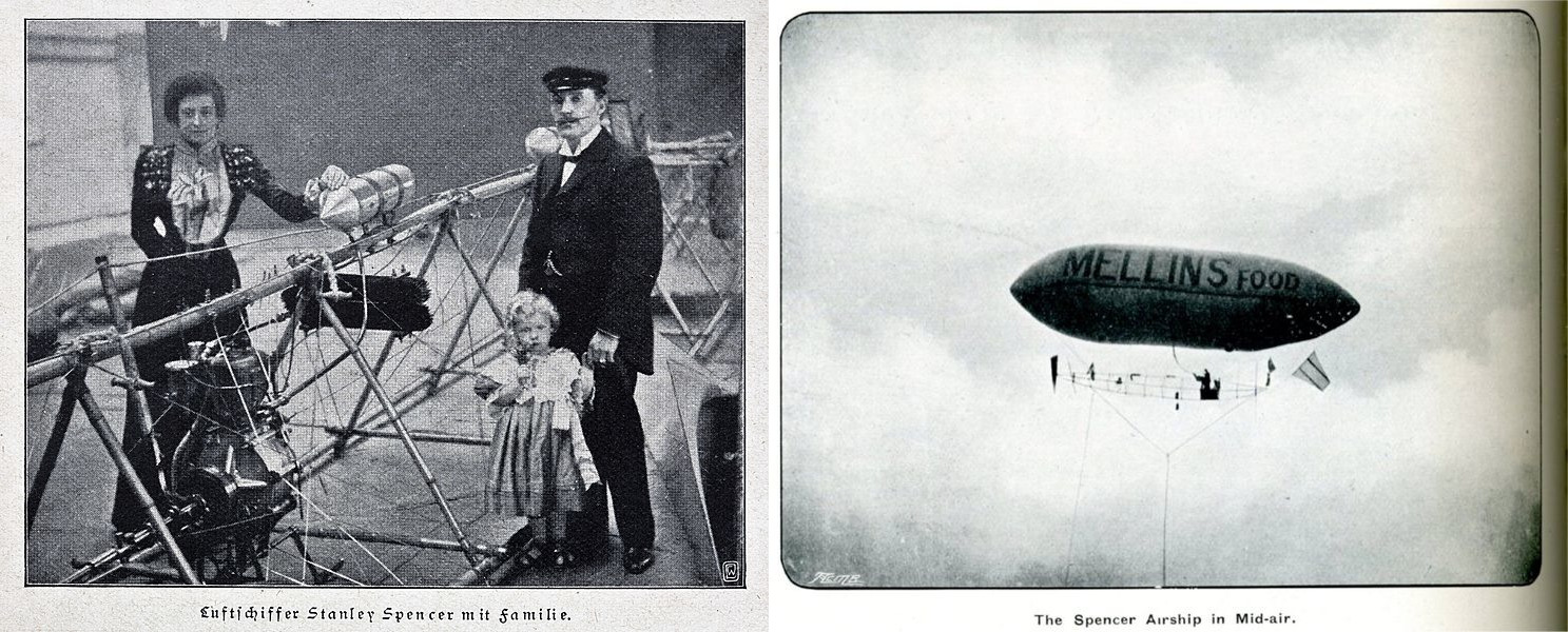 Стенли Спенсер и его первый британский дирижабль с рекламой детского питания.