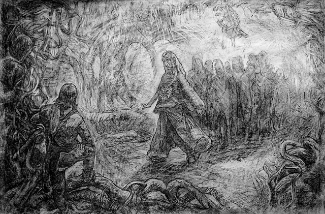 Тогда Роха сам попытался заговорить со спутниками, но не было среди них тех, кто обратил бы на него внимание. А дальше, сквозь ночь, увидел он крадущиеся тени за спинами своих товарищей. И этим черным призракам там не было числа, лишь факел поднеси – из тьмы откроются их лики. Роха закричал, указывая во тьму, но крик его будто растворился. Никто его так и не услышал, хотя и были все его товарищи рядом. Тогда выхватил посланник из пламени головню и бросился навстречу мраку. И тут же сидевшие с ним рядом вдруг умолкли и оглянулись ему вслед. Видение пропало. Роха проснулся и открыл глаза. Дождик, подгоняемый ветром, устремлялся под навес, и холодные капли били по его лицу.