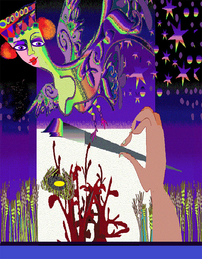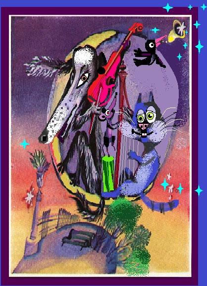 Встретил однажды жираф бегемота.И захотелось жирафу о новостяхпоболтать немного:– «Здравствуй, друг бегемот!Как поживаешь ты?» —раздалось с высоты.А в ответ тишина.С такой высоты не слышно жирафа!Увы!Со всех джунглей роднюзовёт бегемот.Он хочет понять, что, жирафоттуда сверху ему орёт.Бегемоты на зов его бегути друг другу на спины встают.Пирамида живая средь джунглей растёт,растёт, растёт.А на самом верху наш бегемот.Он, достигнув высот,жирафу в самое ухо в ответ:«Привет, сосед! Рад тебя видеть!От всех бегемотов тебе привет!»Рисунок