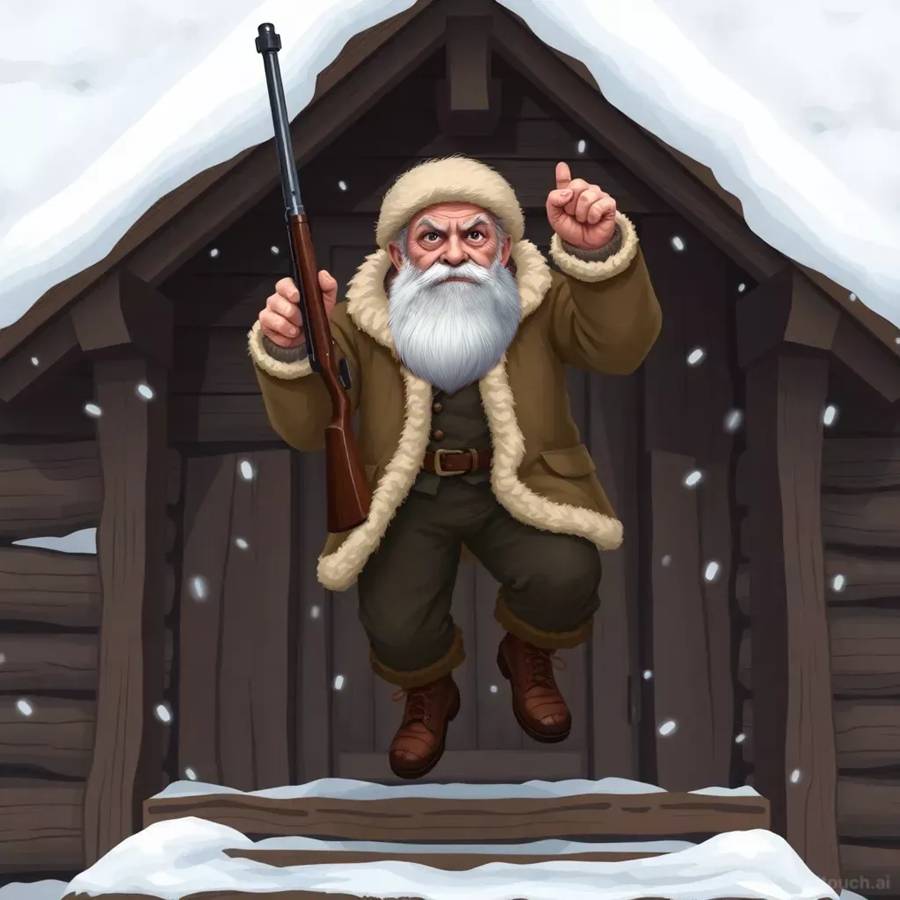 Снап не оглядываясь, бежал всё дальше и дальше в лес. В его висячих ушах грохотало так, что он не мог даже разобрать – это выстрелы ружья или стук его собственного сердца. Наконец он выбился из сил и рухнул в сугроб.