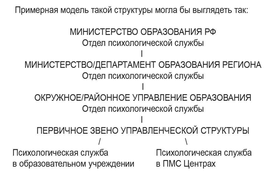 Если существует целостная система образования страны, должна быть и целостная система психологической службы, на нее работающая. Такая система включает в себя все звенья психологической службы, выстроенные в определенной иерархической последовательности и находящиеся в тесном взаимодействии.