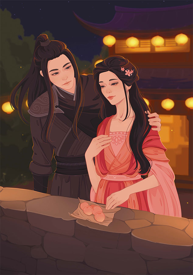 В свете луны, в серых одеждах клана Онэро, господин Дэран будто бы облачился в серебро. Неудивительно, ведь «Онэро» означает «свет серебряной луны». Медленно заложив руки за спину, Дэран обернулся. Его неидеальный профиль казался до невозможности единственно правильным. Как будто он диктовал всему миру стандарты красоты.